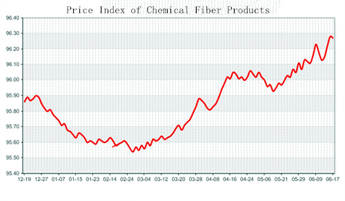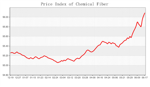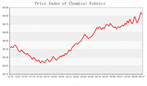 According to the monitor of Chinese Department of Commerce-Shengze Silk Chemical Fiber Index, the price index of chemical fiber rebounded back slightly. At present, the total index of chemical fiber products was closed at 96.27 points, decreased 0.01 point than the previous trading day, the price index of chemical fabric was closed at 96.09 points and fell back 0.06 points than the previous trading day and the price index of chemical fiber was closed at 96.82 points, down 0.02 points than the previous trading day.
