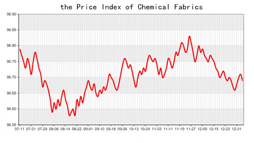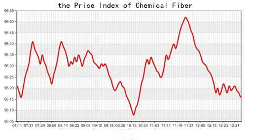 According to the monitor of Chinese Department of Commerce-Shengze Silk Chemical Fiber Index, the price index of chemical fiber went weak. At present, the total index of chemical fiber products was closed at 95.92 points, decreased 0.03 point than the previous trading day, the price index of chemical fabric was closed at 96.69 points and fell back 0.02 point than the previous trading day and the price index of chemical fiber was closed at 96.16 points, down 0.02 point than the previous trading day.