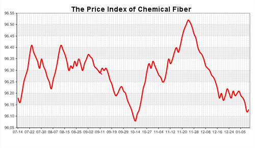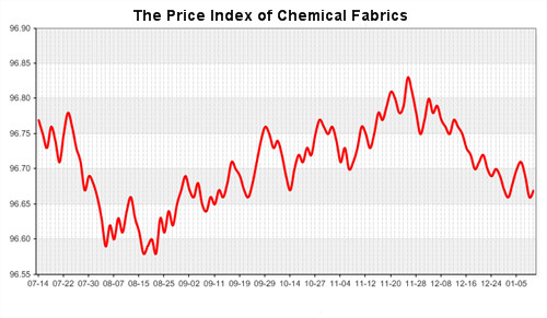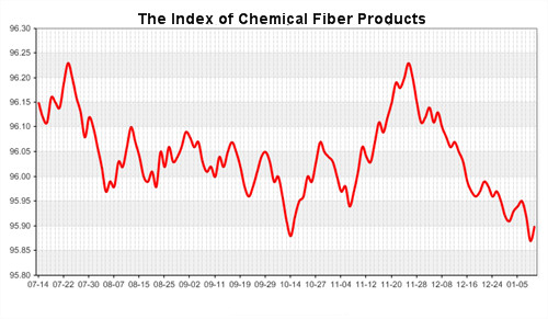 According to the monitor of Chinese Department of Commerce-Shengze Silk Chemical Fiber Index, the indexes of chemical fiber went up. Hereinto, the total index closed at 95.90 points, which increased 0.03 points compared with the previous trading day. The price index of chemical fabrics closed at 96.67 points, which went up 0.01 points. In addition, the price index of chemical fiber also increased, it closed at 96.13 points, which rose 0.01 points compared with yesterday.