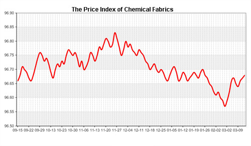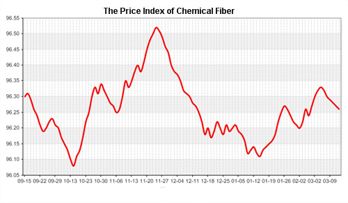 According to the monitor of Chinese Department of Commerce-Shengze Silk Chemical Fiber Index, the indexes of chemical fiber went up. Hereinto, the total index closed at 95.93 points, which went up 0.01 point compared with the previous trading day. The price index of chemical fabrics closed at 96.68 points, which went up 0.01 point. In addition, the price index of chemical fiber also went down, and it closed at 96.26 points, which slid 0.01 point compared with last trading day.