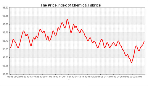 According to the monitor of Chinese Department of Commerce-Shengze Silk Chemical Fiber Index, the indexes of chemical fiber went up. Hereinto, the total index closed at 95.96 points, which went up 0.03 point compared with the previous trading day. The price index of chemical fabrics closed at 96.70 points, which went up 0.02 point. In addition, the price index of chemical fiber also went up, and it closed at 96.28 points, which went up 0.02 point compared with last trading day.