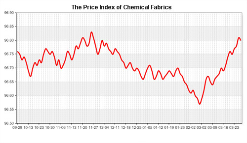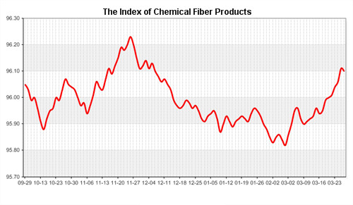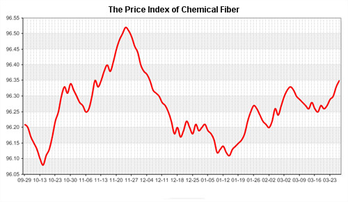 According to the monitor of Chinese Department of Commerce-Shengze Silk Chemical Fiber Index, the indexes of chemical fiber went down. Hereinto, the total index closed at 96.10 points, which went down 0.01 points compared with the previous trading day. The price index of chemical fabrics closed at 96.80 points, which went down 0.01 point. In addition, the price index of chemical fiber went up, and it closed at 96.35 points, which went up 0.02 points compared with last trading day.