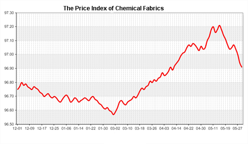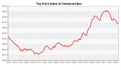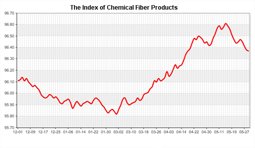 According to the monitor of Chinese Department of Commerce-Shengze Silk Chemical Fiber Index, the indexes of chemical fiber went down. Hereinto, the total index closed at 96.37 points, which went down 0.01 point compared with the previous trading day. The price index of chemical fabrics closed at 96.91 points, which went down 0.03 points. In addition, the price index of chemical fiber went down, and it closed at 96.67 points, which went down 0.02 points compared with last trading day.
