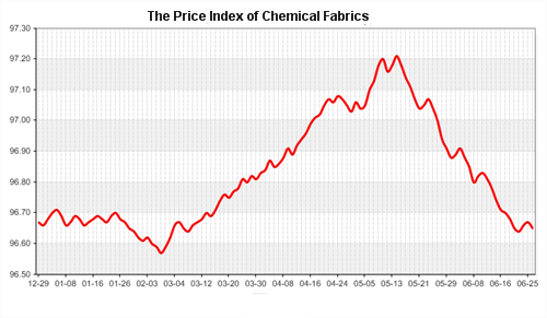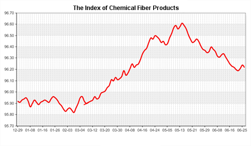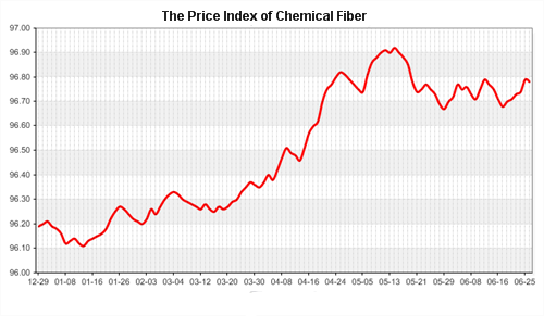 According to the monitor of Chinese Department of Commerce-Shengze Silk Chemical Fiber Index, the indexes of chemical fiber went down. Hereinto, the total index closed at 96.22 points, which went down 0.02 points compared with the previous trading day. The price index of chemical fabrics closed at 96.65 points, which went down 0.02 point. In addition, the price index of chemical fiber went down, and it closed at 96.78 points, which went down 0.01 point compared with last trading day.