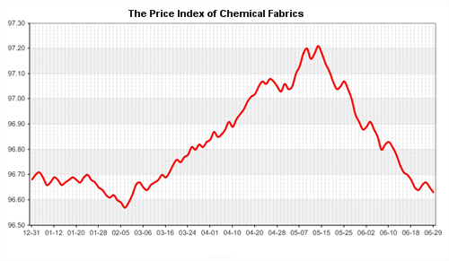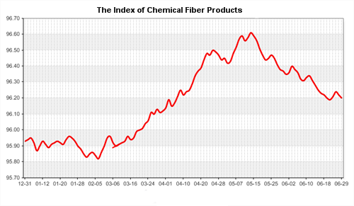 According to the monitor of Chinese Department of Commerce-Shengze Silk Chemical Fiber Index, the indexes of chemical fiber went down. Hereinto, the total index closed at 96.2 points, which went down 0.02 points compared with the previous trading day. The price index of chemical fabrics closed at 96.63 points, which went down 0.02 points. In addition, the price index of chemical fiber went down, and it closed at 96.77 points, which went down 0.01 point compared with last trading day.