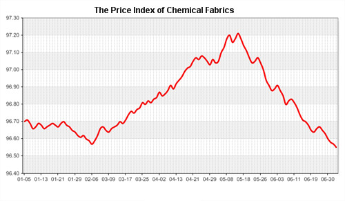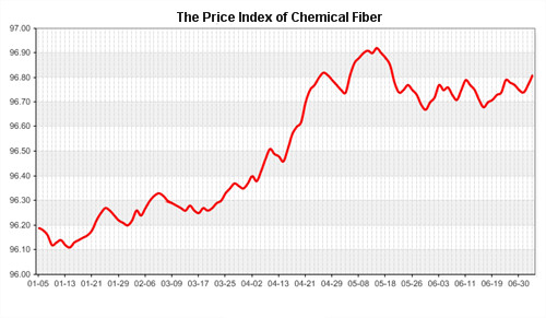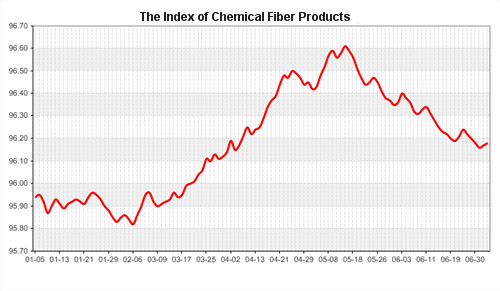 According to the monitor of Chinese Department of Commerce-Shengze Silk Chemical Fiber Index, the indexes of chemical fiber went down. Hereinto, the total index closed at 96.18 points, which went down 0.01 point compared with the previous trading day. The price index of chemical fabrics closed at 96.55 points, which went down 0.02 points. In addition, the price index of chemical fiber went down, and it closed at 96.81 points, which went up 0.04 point compared with last trading day.