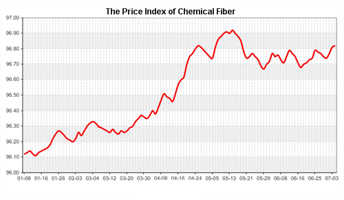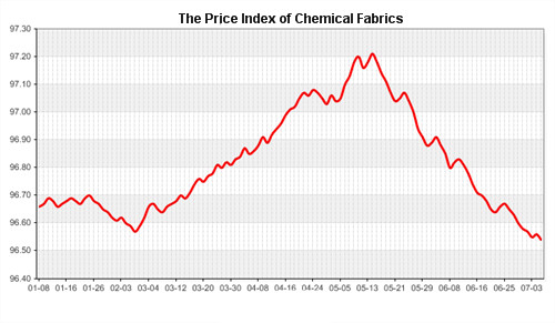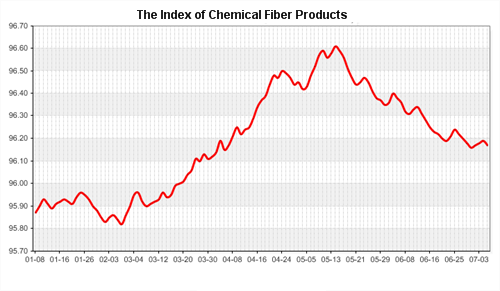 According to the monitor of Chinese Department of Commerce-Shengze Silk Chemical Fiber Index, the indexes of chemical fiber went down. Hereinto, the total index closed at 96.17 points, which went down 0.02 points compared with the previous trading day. The price index of chemical fabrics closed at 96.54 points, which went down 0.02 points. In addition, the price index of chemical fiber went up, and it closed at 96.82 points, which went down 0.01 point compared with last trading day.