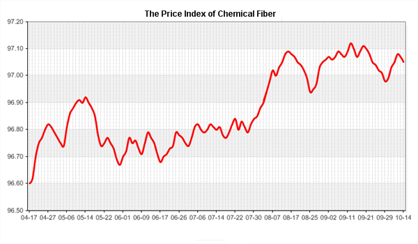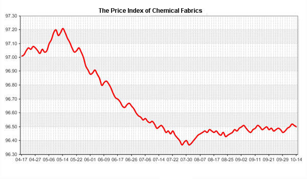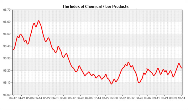 According to the monitor of Chinese Department of Commerce-Shengze Silk Chemical Fiber Index, the indexes of chemical fiber continues to go down. Hereinto, the total index closed at 96.22 points, which went down 0.02 points compared with the previous trading day. The price index of chemical fabrics closed at 96.50 points, which went down 0.01 point. In addition, the price index of chemical fiber went down, and it closed at 97.05 points, which went down 0.02 points compared with last trading day.