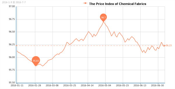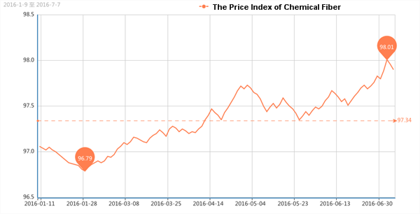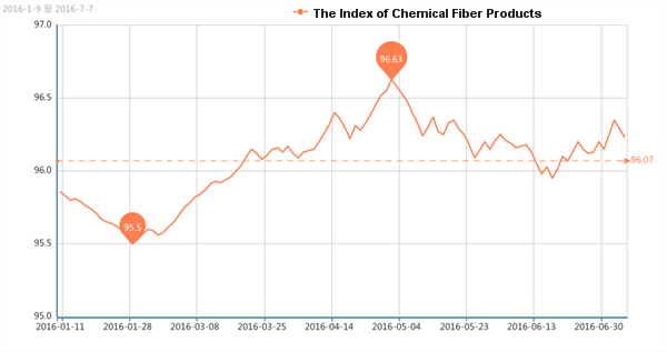 According to the monitor of Chinese Department of Commerce-Shengze Silk Chemical Fiber Index, the indexes of chemical fiber go down. Hereinto, the total index closed at 96.23 points, which went down 0.06 points compared with the previous trading day. The price index of chemical fabrics closed at 96.21 points, which declined 0.04 points. In addition, the price index of chemical fiber went down, and it closed at 97.90 points, which went down 0.06 points compared with the previous trading day.