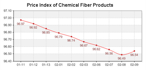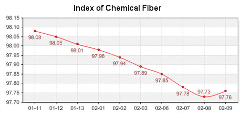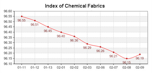 February 9, 2012- Shengze Silk and Chemical Fiber Index slightly rebounded. The total price index of chemical fiber closed at 96.54, increased 0.05 point compared with the last trading day. Price index of chemical fabrics closed at 96.19, up 0.04. Index of chemical fiber closed at 97.76, up 0.03. As the Spring Festival has been over, the textile market also has gotten into operation. Traders have started to run orders and the manufacturers have restarted the production. The good trading atmosphere brought a rising tendency for the fabrics market.
