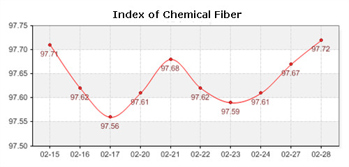February 28, 2012, the data monitor of Chinese Department of Commerce- Shengze Silk Chemical Fiber Index followed increasing tendency. The total index closed at 96.79, up 0.05 compared with it of last trading day. Among the indexes, chemical fabric index increased 0.04 to 96.45. Chemical fiber index increased 0.05 to 97.72.