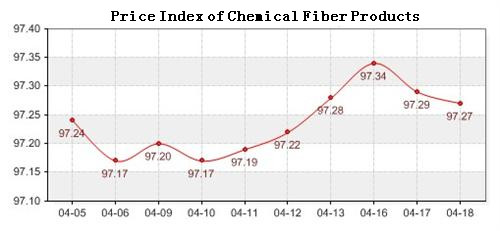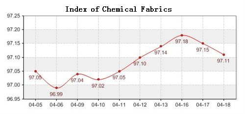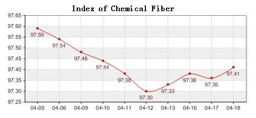 According to the monitor of Chinese Department of Commerce-Shengze Silk Chemical Fiber Index, the price index of chemical fiber closed at 97.27 points, fell 0.02 points compared with previous day, the index of chemical fabrics closed at 97.11 points, dropped 0.04 points, and the index of chemical fiber slightly rebounded, closed at 97.41 points, an increase of 0.05 points.