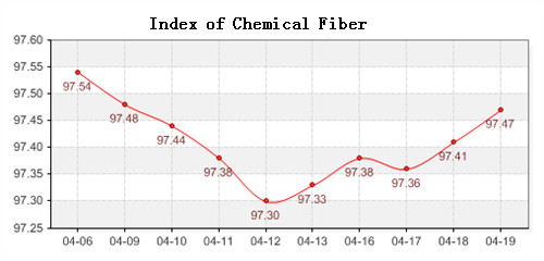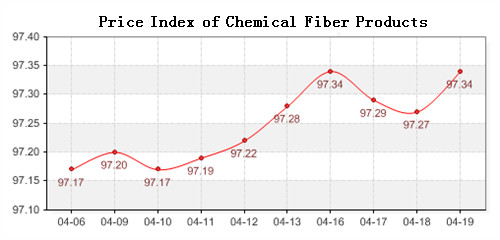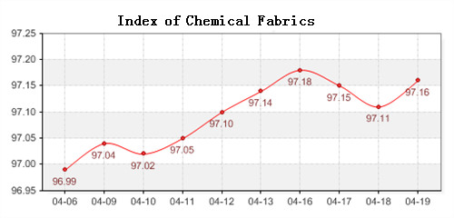 According to the monitor of Chinese Department of Commerce-Shengze Silk Chemical Fiber Index, the price index of chemical fiber products closed at 97.34 points, an increase of 0.07 points compared with previous trading day, the price index of chemical fabrics closed at 97.16 points, rose slightly 0.05 points, and the price index of chemical fiber closed at 97.47 points, up 0.06 points compared with previous trading day.