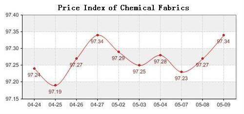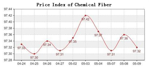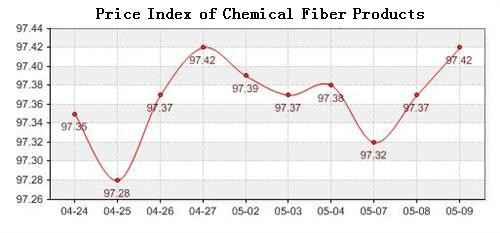 According to the monitor of Chinese Department of Commerce-Shengze Silk Chemical Fiber Index, the total index of chemical fiber products continue to rise, which increases 0.05 points compared to the previous trading day, closed at 97.42 points. In addition, the price index of chemical fabrics continue the rising tendency, an increase of 0.07 points, closed at 97.34 points, and the price index of chemical fiber rebounds back, which drops 0.04 points, closed at 97.32 points.