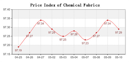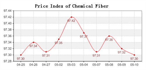According to the monitor of Chinese Department of Commerce-Shengze Silk Chemical Fiber Index, the index of chemical fiber rebounded back as a whole. Among which the price index of chemical fiber products closed at 97.36 points, fell 0.06 points compared with the last trading day, the price index of chemical fabrics closed at 97.29 points, dropped 0.05 points compared to the previous trading day, and the price index of chemical fiber closed at 97.30 points, reduced 0.02 points compared with the last trading day.