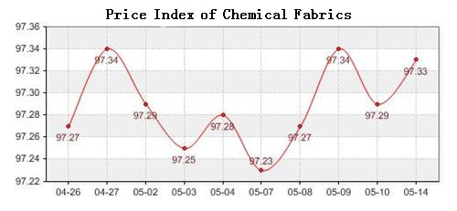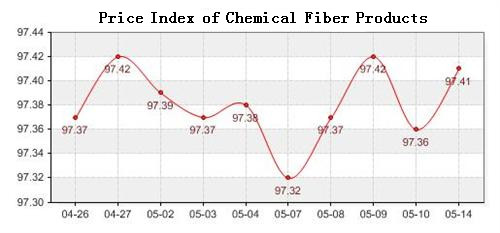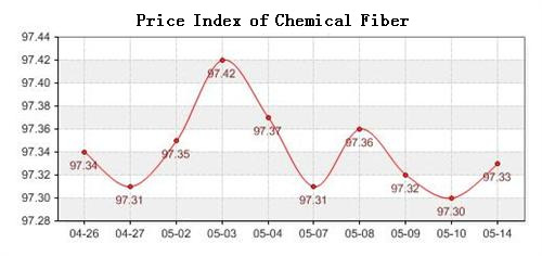 According to the monitor of Chinese Department of Commerce-Shengze Silk Chemical Fiber Index, the index of chemical fiber rose again after a fall as a whole. The total index of chemical fiber increased 0.05 points compared with last Friday, which closed at 97.41 points. In addition, the price index of chemical fabrics rose 0.04 points compared with last Friday, which closed at 97.33 points, and the price index of chemical fiber picked up 0.03 points, closed at 97.33 points.