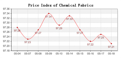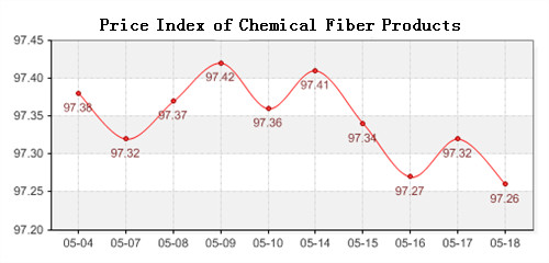 168tex News: According to the monitor of Chinese Department of Commerce-Shengze Silk Chemical Fiber Index, the index of chemical fiber was consolidated by weakness. Among which the total index of chemical fiber was sluggish, which closed at 97.26 points and fell to 0.06 points compared with the previous trading day, the price index of chemical fabric also reduced, closed at 97.21 points and dropped to 0.04 points, and the price index of chemical fiber also continued to the downward trends, closed at 97.11 points and reduced 0.09 points compared with the previous trading day.