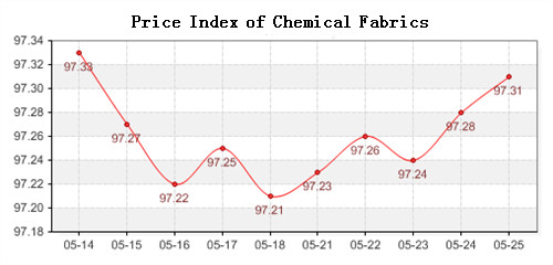 According to the monitor of Chinese Department of Commerce-Shengze Silk Chemical Fiber Index, the index of chemical fiber increased as a whole. The total index of chemical fiber products rose to 0.04 points compared with the previous trading day, closed at 97.30 points, the index of chemical fabric picked up 0.03 points, closed at 97.31 points, and the index of chemical fiber increased 0.03 points compared with yesterday, closed at 96.90 points.