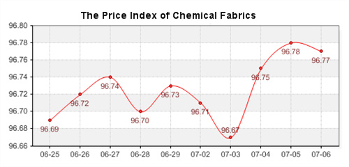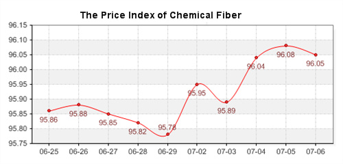 According to the monitor of Chinese Department of Commerce-Shengze Silk Chemical Fiber Index, the indexes of chemical fiber declined slightly. Hereinto, the price index of chemical fiber products closed at 96.61 points, which dropped 0.03 points compared with the previous trading day. The price index of chemical fabrics closed at 96.77 points, which slid 0.01 points. In addition, the price index of chemical fiber closed at 96.05 points, which fell 0.03 points compared with the previous trading day.