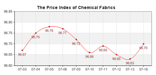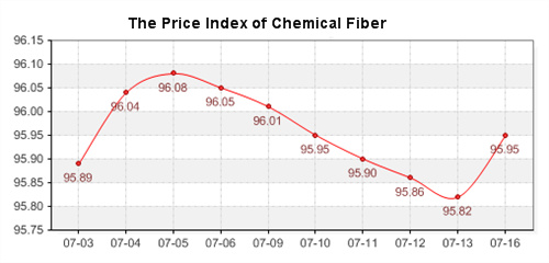 According to the monitor of Chinese Department of Commerce-Shengze Silk Chemical Fiber Index, the indexes of chemical fiber increased dramatically. Hereinto, the total index closed at 96.50 points, which increased 0.10 points. The price index of chemical fabrics closed at 96.70 points, which up 0.07 points. In addition, the price index of chemical fiber slid slightly, it closed at 95.95 points, which fell 0.13 points compared with yesterday.