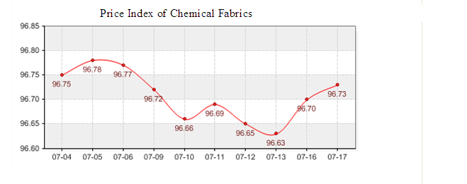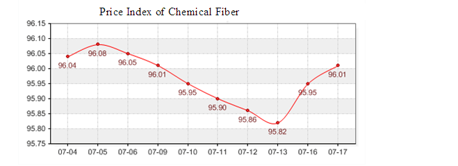 According to the monitor of Chinese Department of Commerce-Shengze Silk Chemical Fiber Index, the indexes of chemical fiber increased. The total chemical fiber index closed at 96.55 points, which increased 0.05 points compared with the last trading day. Hereinto, the price index of chemical fabrics closed at 96.73 points, which increased 0.03 points compared with the last trading day. In addition, the chemical fiber index closed at 96.01 points, which increased 0.06 points compared with the last trading day.