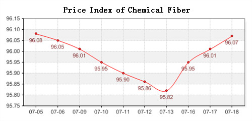 According to the monitor of Chinese Department of Commerce-Shengze Silk Chemical Fiber Index, the index of chemical fiber products follows the rising trends. Among which the total index of chemical fiber was closed at 96.59 points and increased 0.04 point than the last trading day, the price index of chemical fabric was closed at 96.78 points and rose 0.05 points than the last trading day and the price index of chemical fiber was closed at 96.07 points and up 0.06 points than the last trading day.