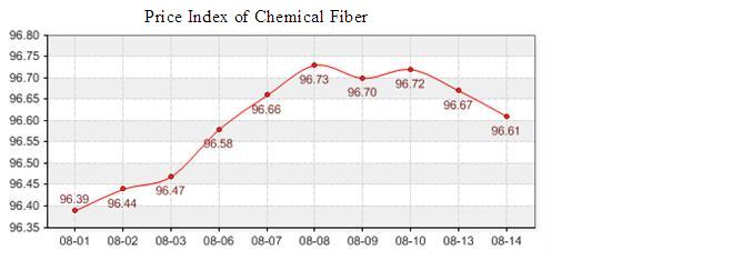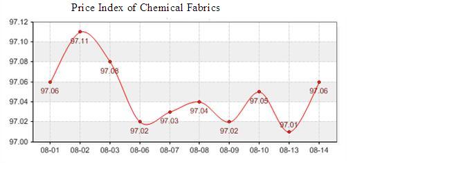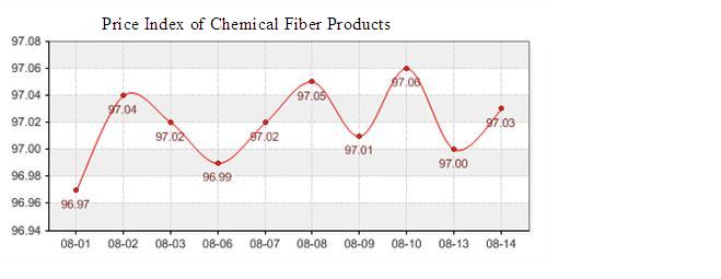 According to the monitor of Chinese Department of Commerce-Shengze Silk Chemical Fiber Index, the indexes of chemical fiber increased. The total chemical fiber index closed at 97.03 points, which increased 0.03 points compared with the last trading day. Hereinto, the price index of chemical fabrics closed at 97.06 points, which increased 0.05 points compared with the last trading day. In addition, the chemical fiber index closed at 96.61 points, which increased 0.06 points compared with the last trading day.